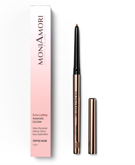 Der automatische Lippenkonturenstift Extra-LipStay von MoniAmori verleiht den Lippen ein samtiges Finish und eine intensive Farbe. Die cremige Textur lässt sich leicht und präzise auftragen und sorgt für eine perfekt definierte Lippenkontur. Die wasserfeste, vegane Formel ist frei von Allergenen, Erdölderivaten, Silikonen und sorgt für einen makellosen Make-up-Look, der den ganzen Tag über hält. Vegane Wachse wirken rückfettend und bewahren die natürliche Hautbarriere – für geschmeidige, gepflegte Lippen.